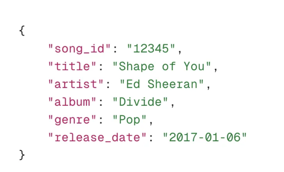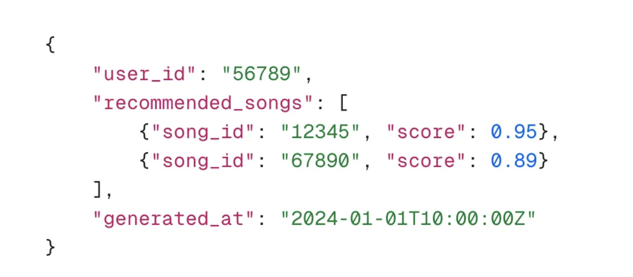 SET user:preferences:12345 "{liked_songs: [1, 2, 3], playlists: [10, 11, 12]}"