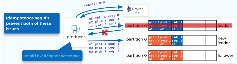 - Solution: Broker assigns each producer an ID and deduplicates messages using a sequence number.