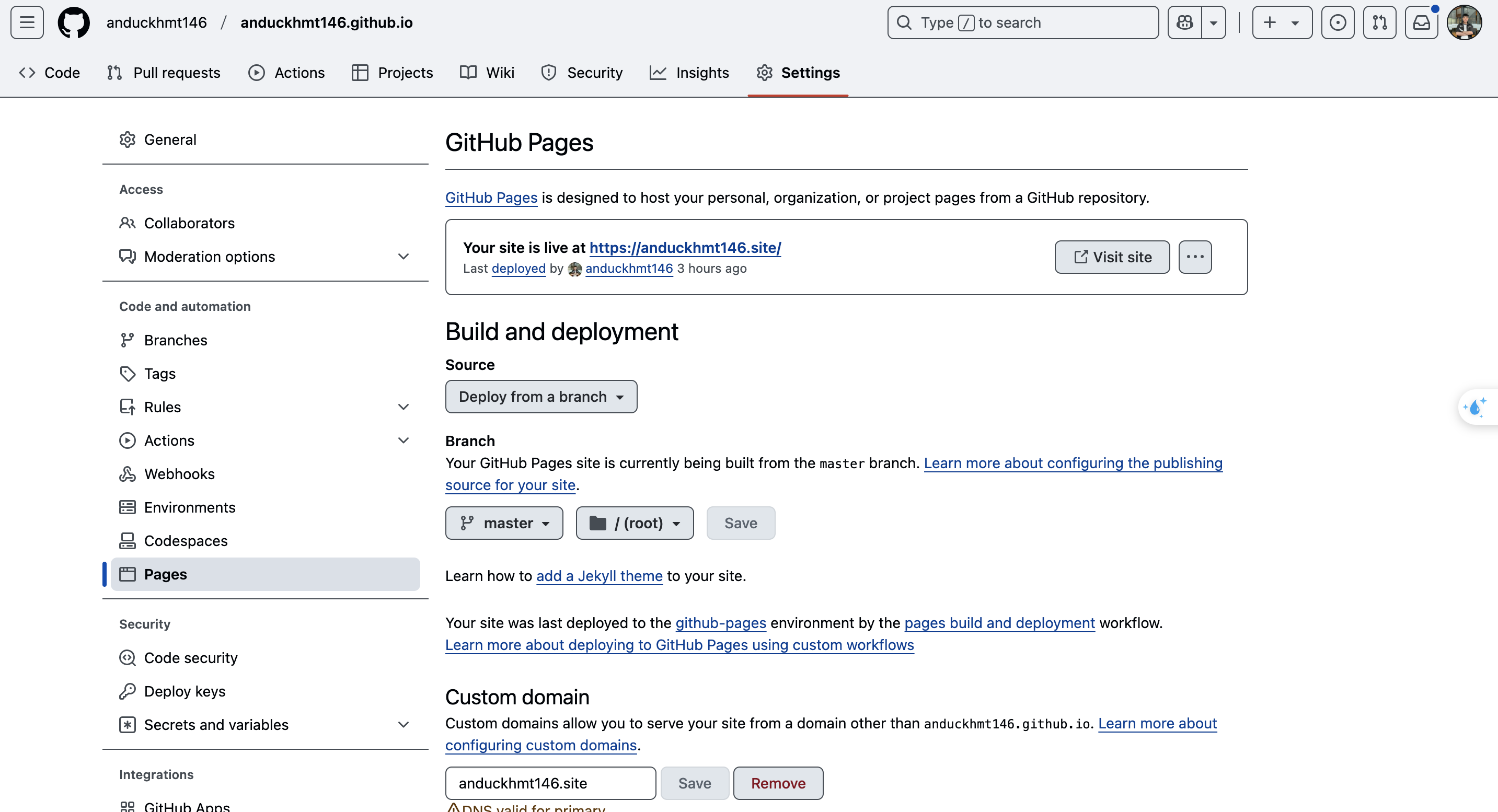 Step 5: Click to Settings in Github page ⇒ Input your custom domain ⇒ Select Github Actions