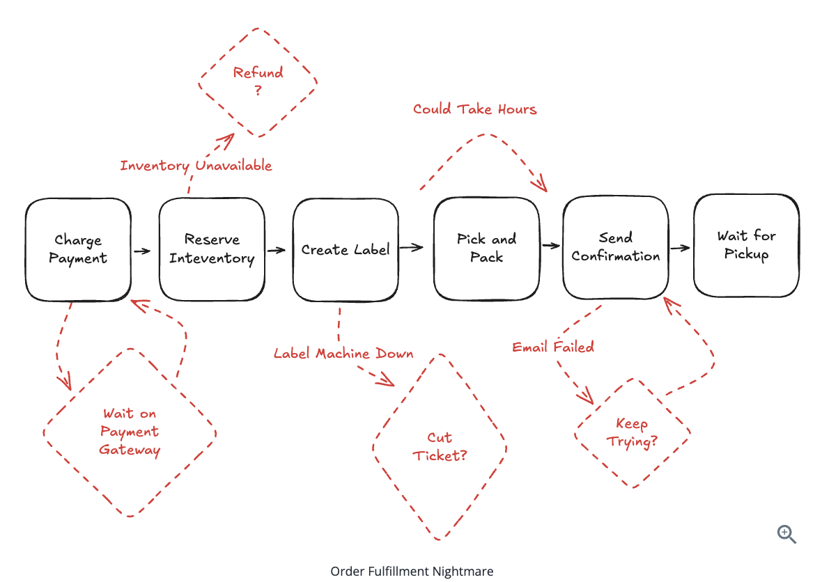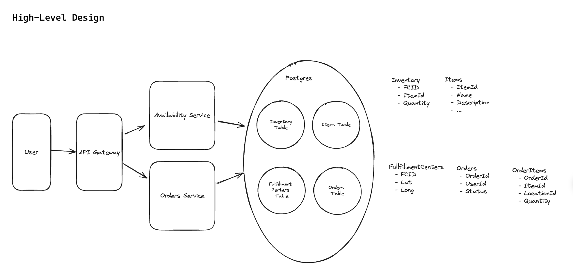 (1) Check the inventory items are still available at the locations we determined when we checked availability. (2) Decrement the inventory counts at those locations. (3) Create a new Order record with the associated items.”
