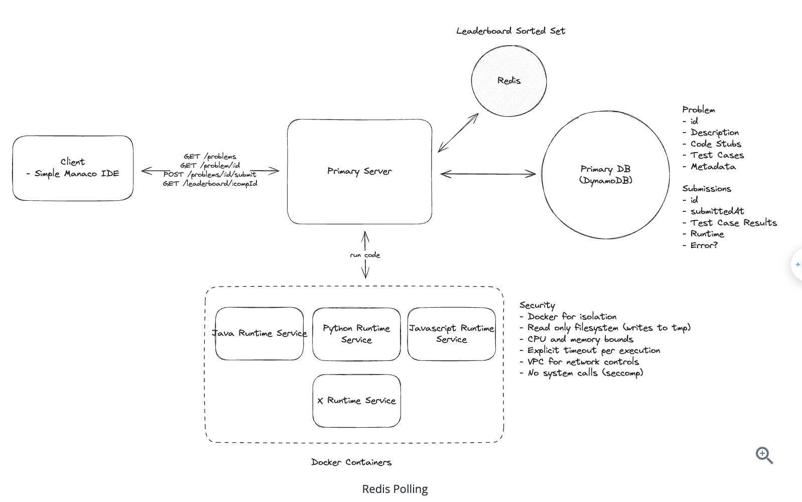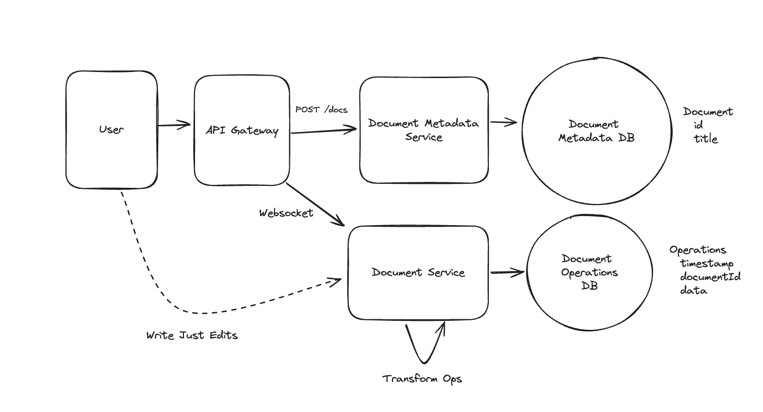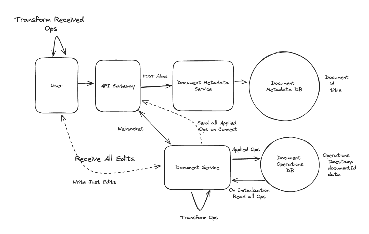 - Users will frequently send updates to their cursor position (no need to send if it doesn’t change!) to the Document Service which will update the struct for that user and broadcast to all connected users => Else offline.