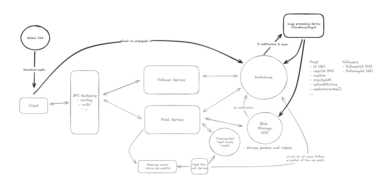46.15. When designing Instagram’s media upload system for files up to 4GB, what is the primary architectural decision that enables both upload reliability and direct client-to-storage efficiency?