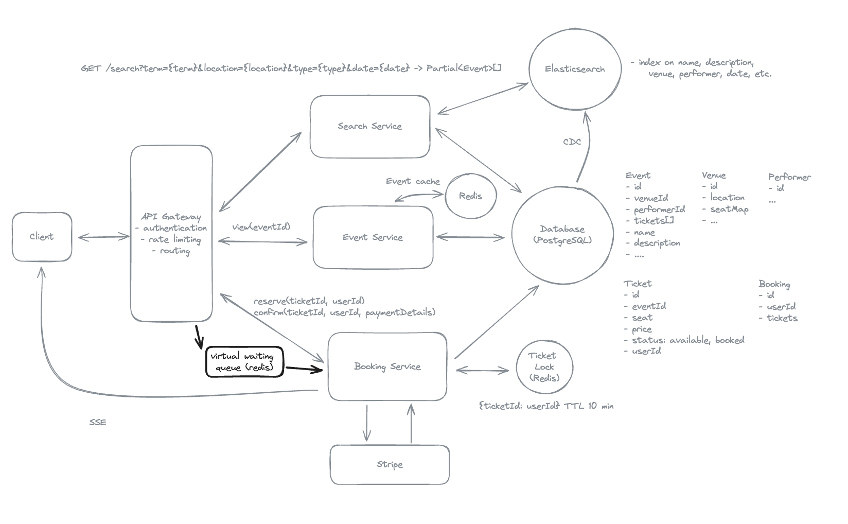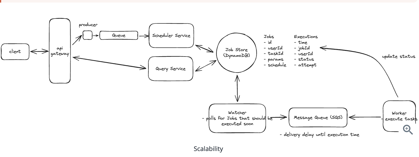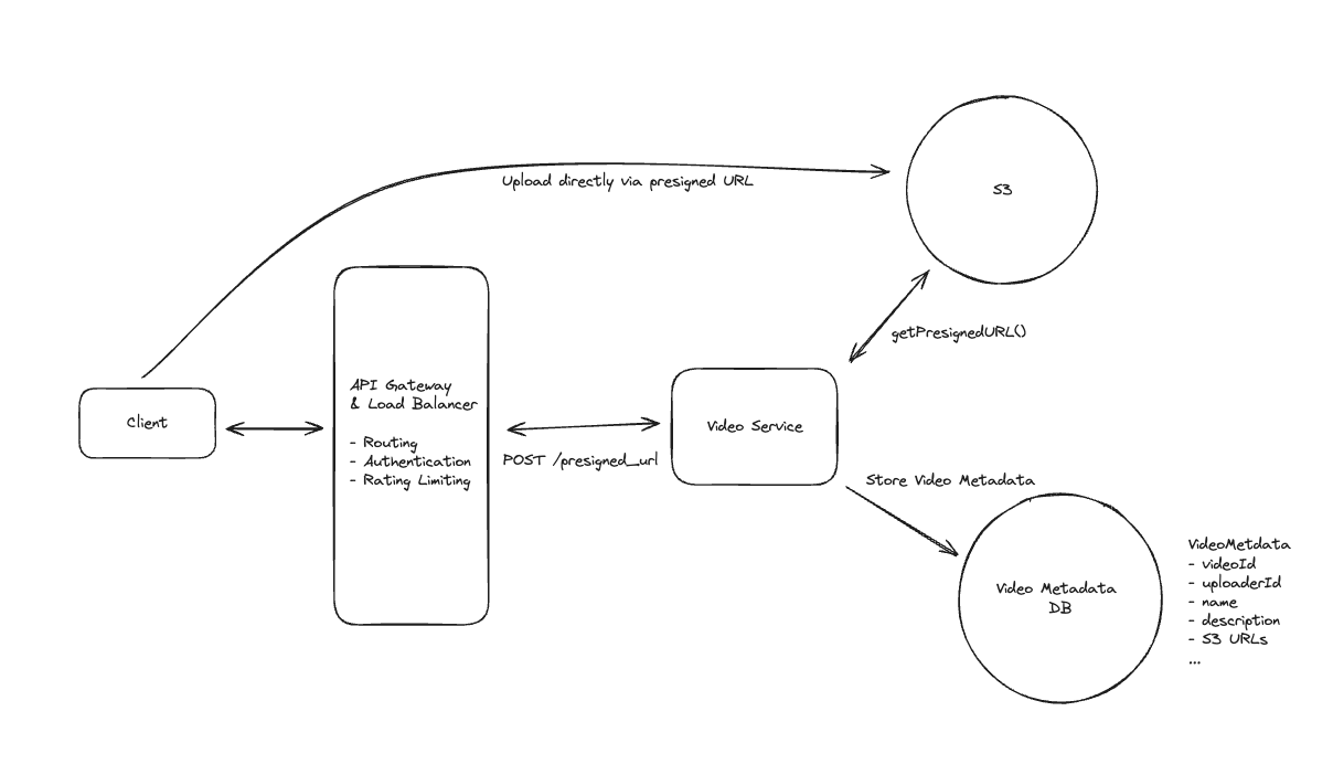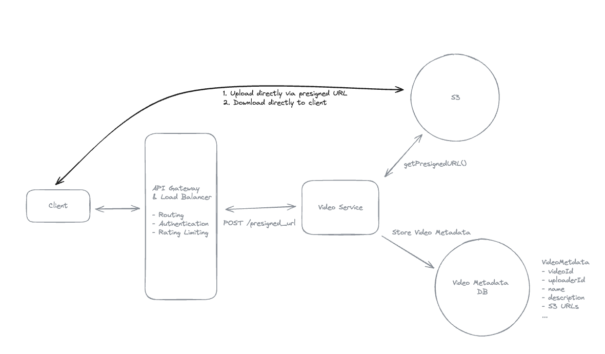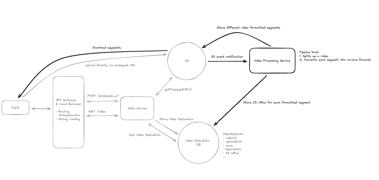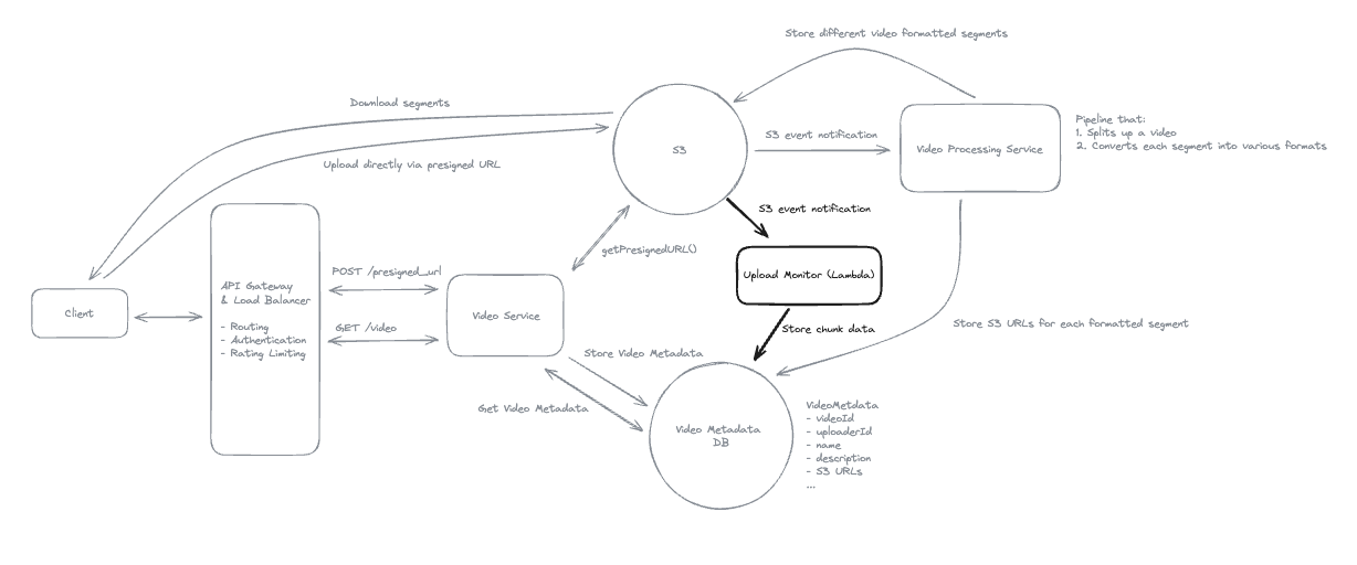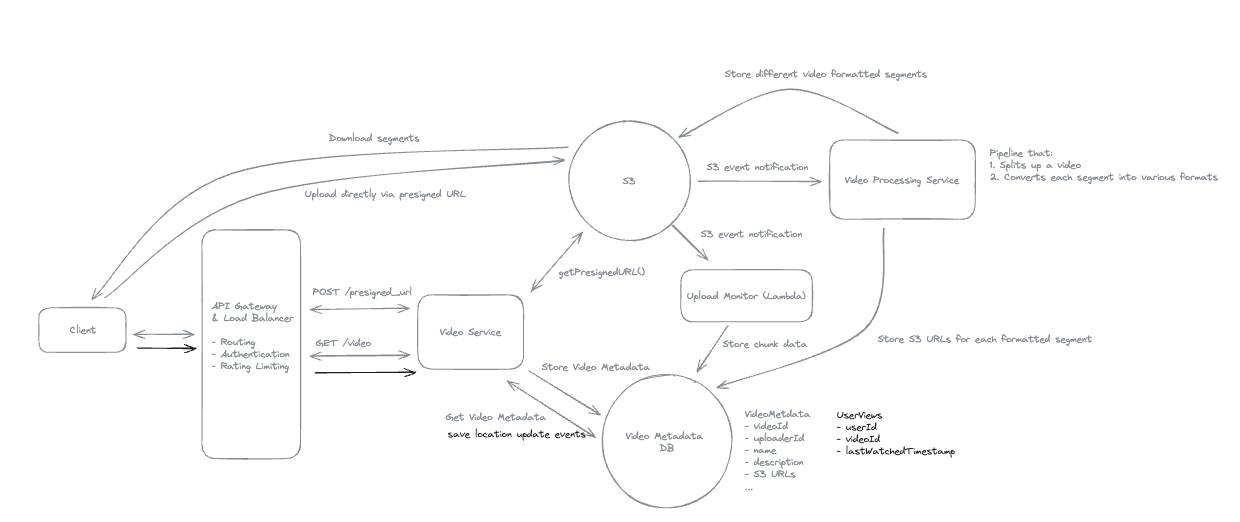 - To allow users to resume playback on different devices, the client application periodically sends the current playback position to the Video Service via the API Gateway.