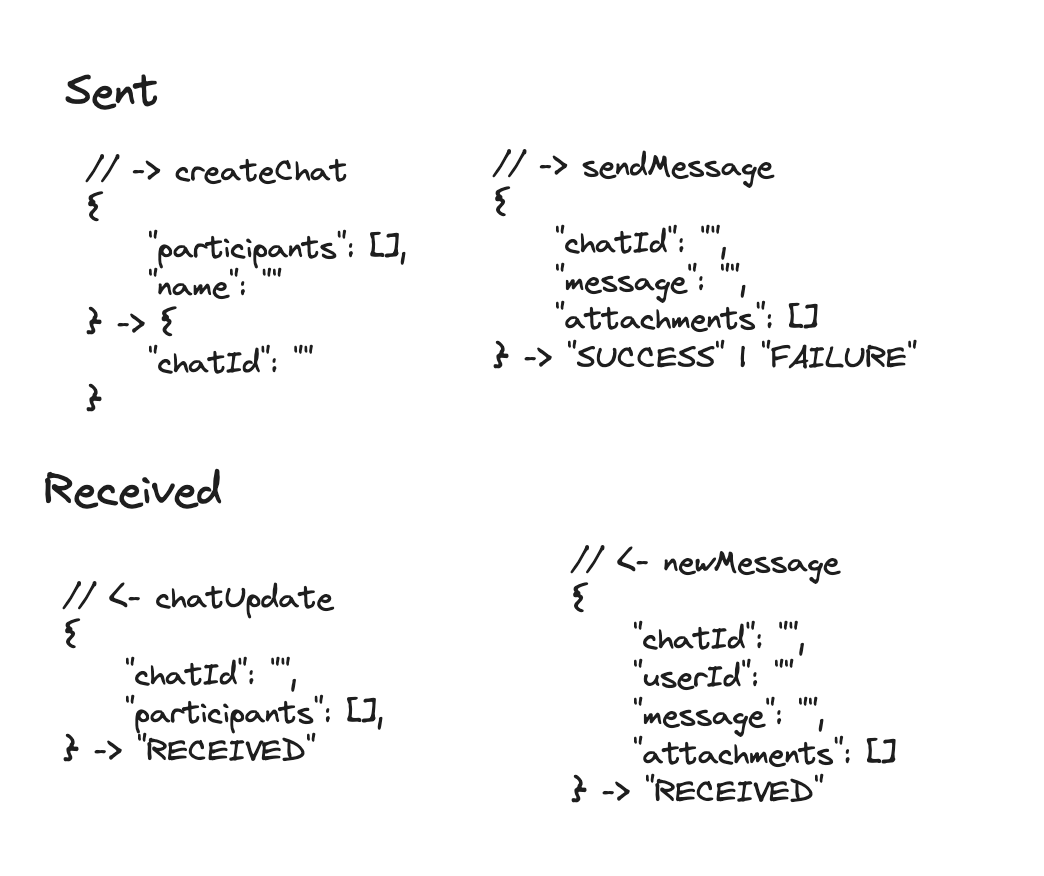 - Use Websocket for clients to connect to server. We need to specify both the commands that are sent to the server and those received by the client.