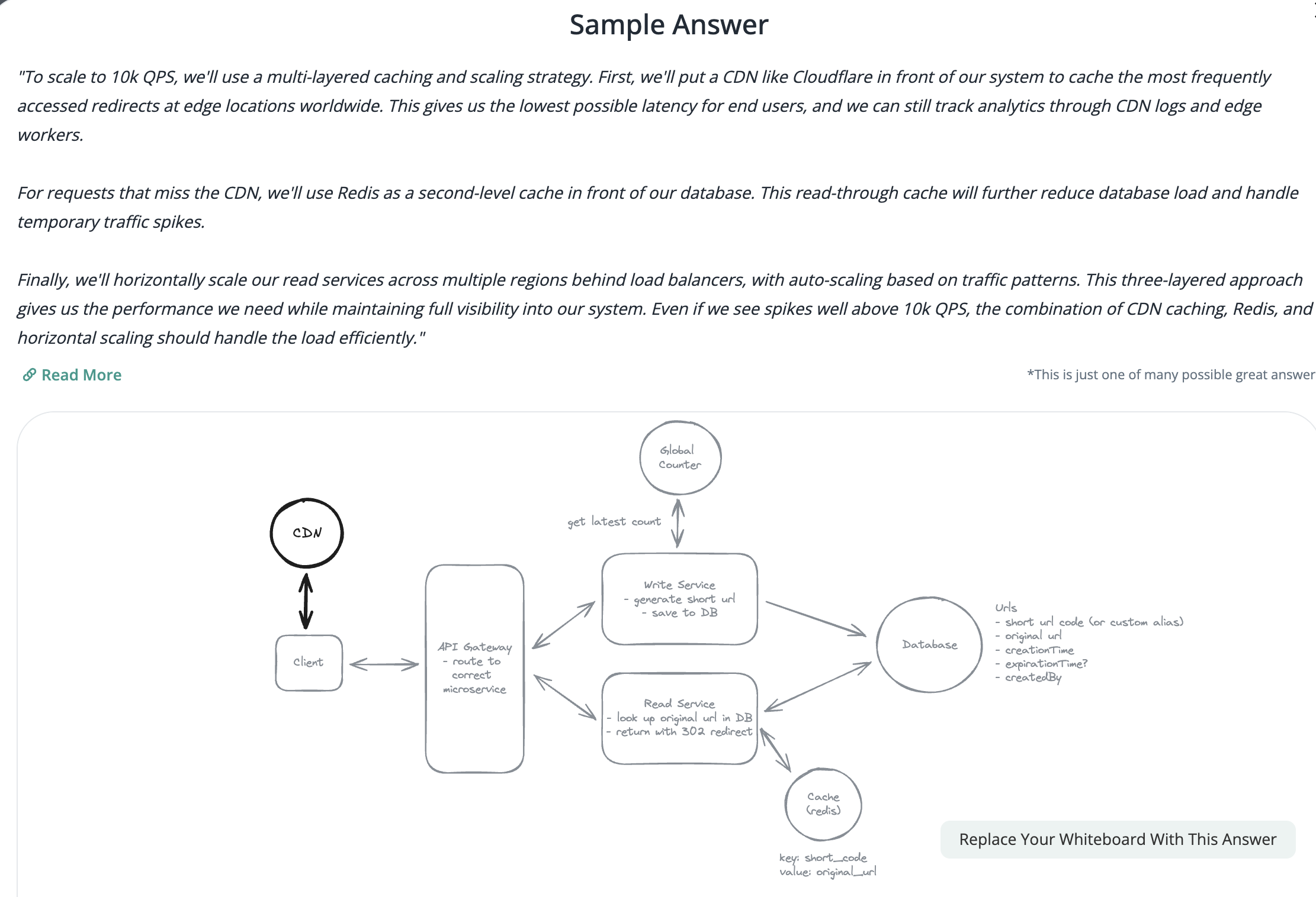 To achieve 10M rps, using multiple layer cache: CDN > Redis > Horizontal Scaling (Stateless).