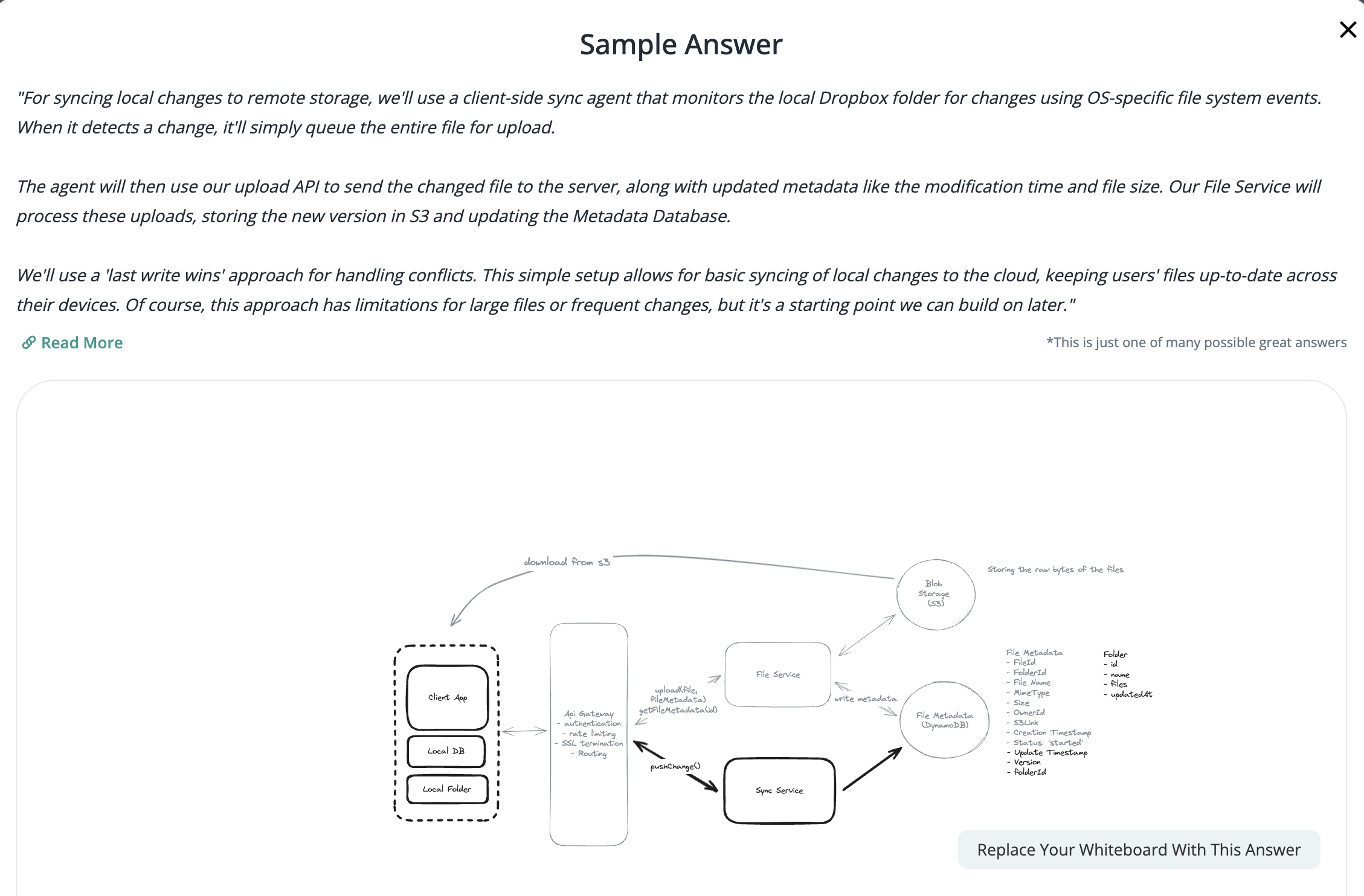 Using client-side sync agent + ‘Last write win’ to handle conflicts => sync update metadata to DynamoDB.