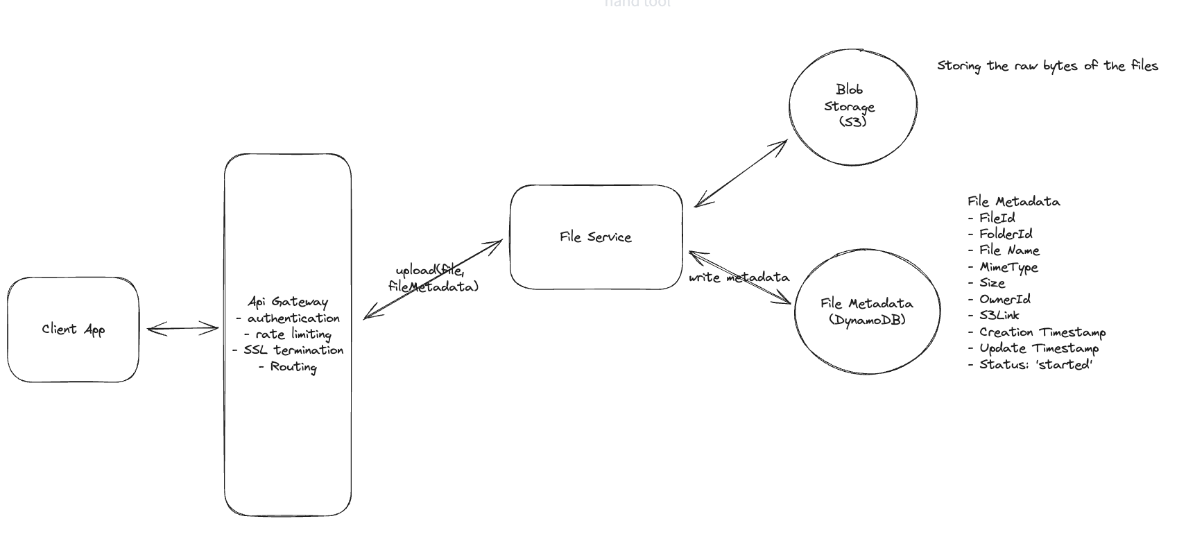File Service: Upload file and create metadata.