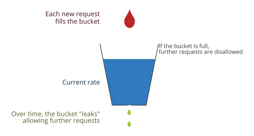The Token Bucket algorithm uses the concept of a bucket that is continuously filled with tokens at a fixed rate. Each request consumes one token. If tokens are available, the request is allowed; if not, it’s throttled.